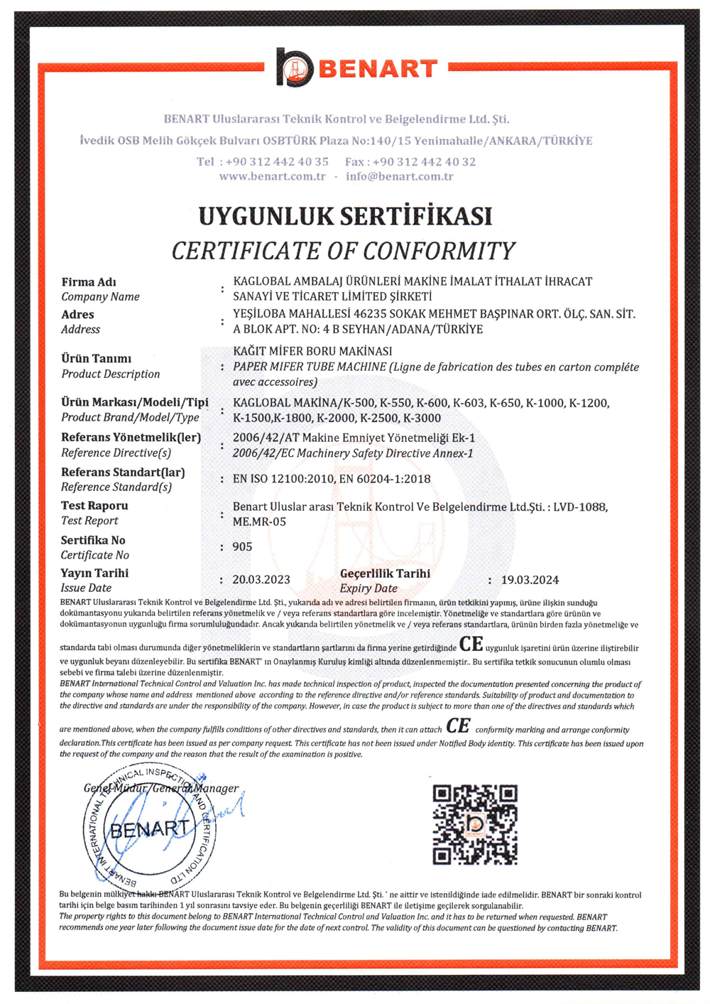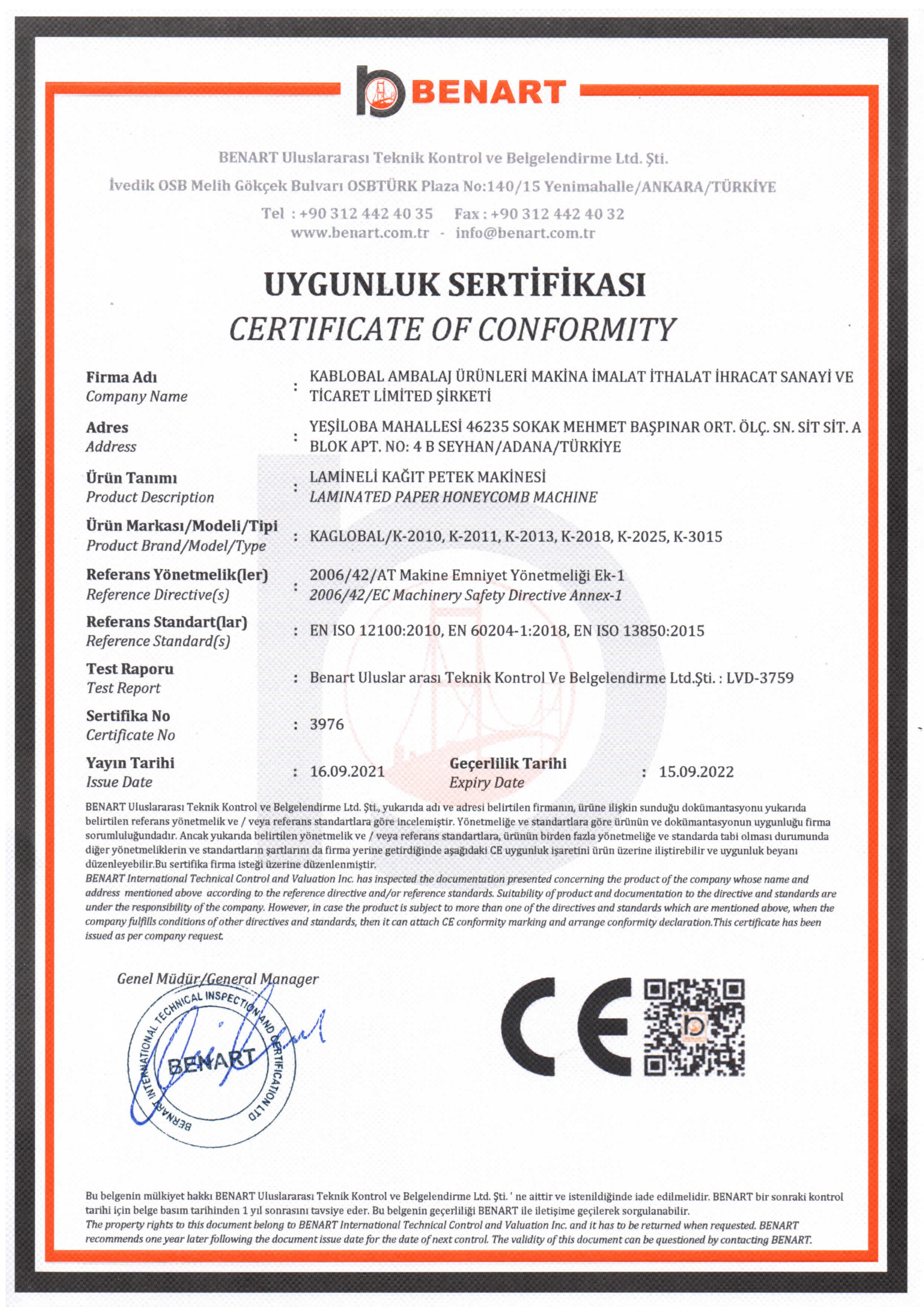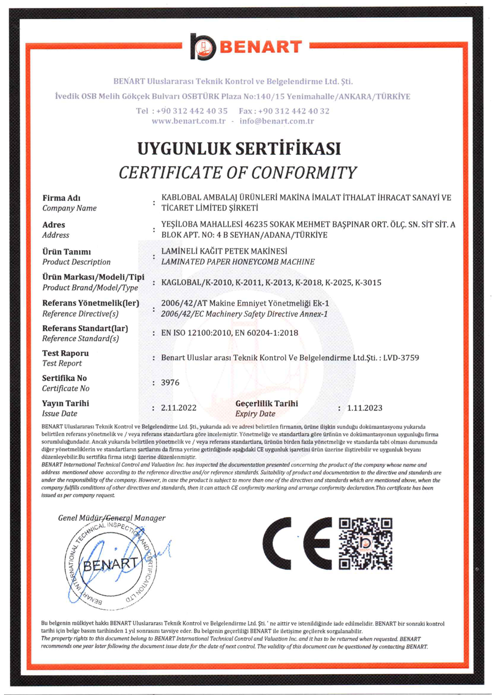 Türkiye’nin Adana ilinde kayıtlı Büyük Sanayi Kuruluşları içerisinde yer alan Ka Makine Sanayi, ISO 9001 Kalite Yönetim Sistemi, İş Sağlığı ve Güvenliği Yönetim Sistemi, CE belgeleri sahibidir.